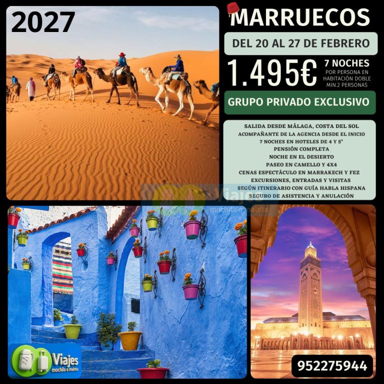 Si solo tienes unos días para viajar, una escapada desde Málaga es la opción perfecta. En nuestra web encontrás escapadas programadas, o, si lo prefieres, contacta con nosotros para organizar tu escapada ideal. Te ayudaremos a decidir.