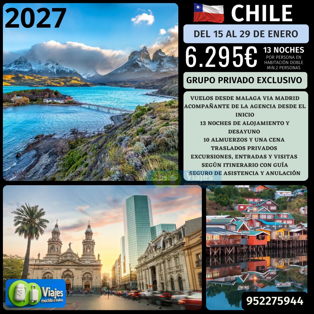 Presentación en aeropuerto. Trámites de facturación y embarque con destino Santiago de Chile con escala en Madrid. Llegada, asistencia y traslado al hotel. Alojamiento.