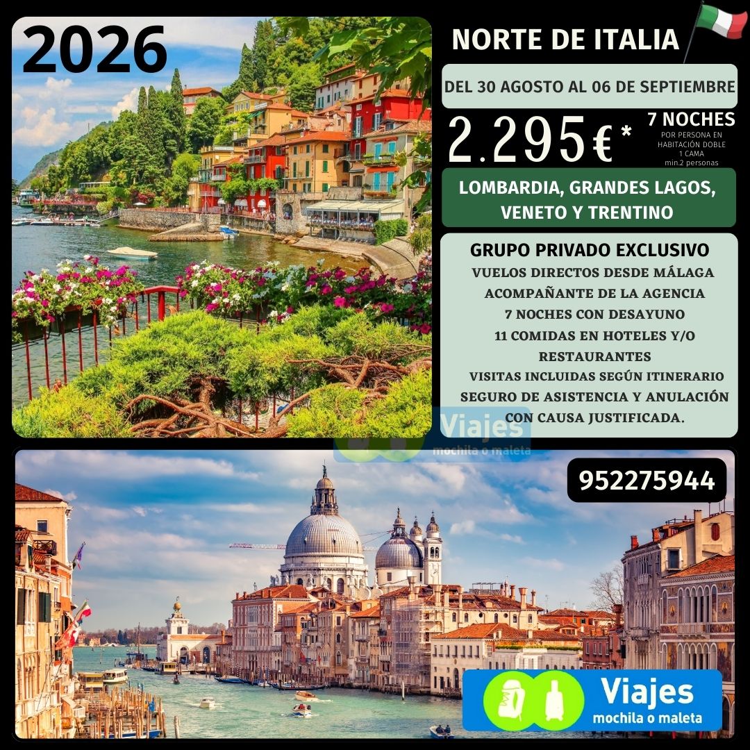NORTE DE ITALIA y GRANDES LAGOS del 30 de AGOSTO al 6 de SEPTIEMBRE cantidad
